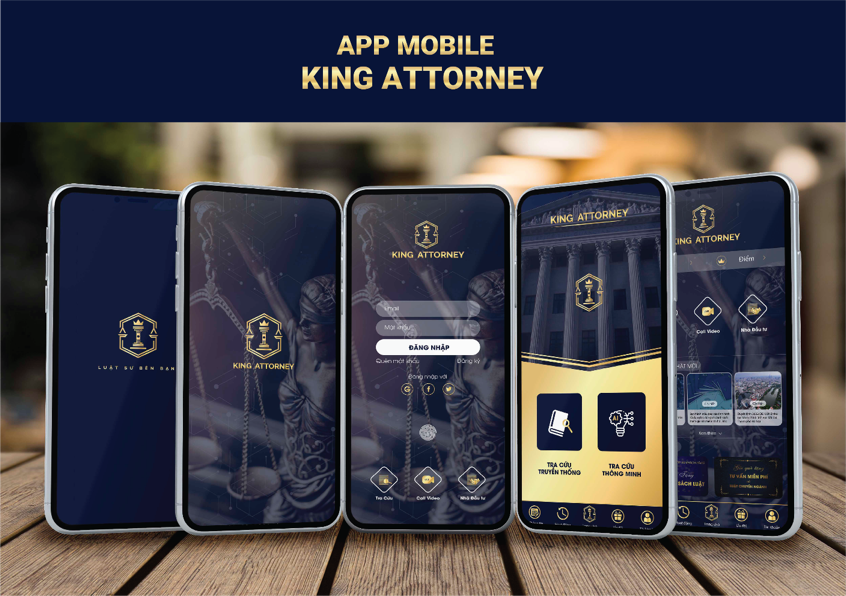 App King Attorney (Vua App Luật sư 5.0) là sự ứng dụng di động được thực hiện trên nền tảng công nghệ cao 5.0, kết hợp xử lý áp dụng hệ thống Trí tuệ nhân tạo (AI) và đưa ý tưởng về luật pháp hiện thực hóa đến cho người dùng muốn tìm hiểu, tra cứu, giải đáp các thắc mắc, xử lý tình huống vướng mắc, rắc rối, giải quyết được tất cả vấn đề của cá nhân, gia đình, xã hội mà trước đây mọi người phải nhờ đến sự giúp đỡ, xử lý của các Ban, Ngành, Cơ quan Nhà nước, Tòa án, Luật sư tư vấn.