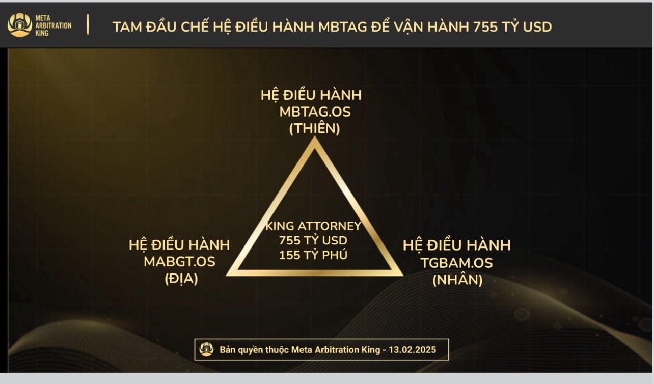 Thay vào đó, vận dụng công thức tác quyền MBTAG của KA – chính là Tam đầu chế hệ điều hành (MBTAG.OS, MABGT.OS, TGBAM.OS) để tích hợp 755 tỷ USD về đất mẹ một cách công khai, minh bạch (được warranted bởi giới tinh hoa Do Thái). Mục tiêu: